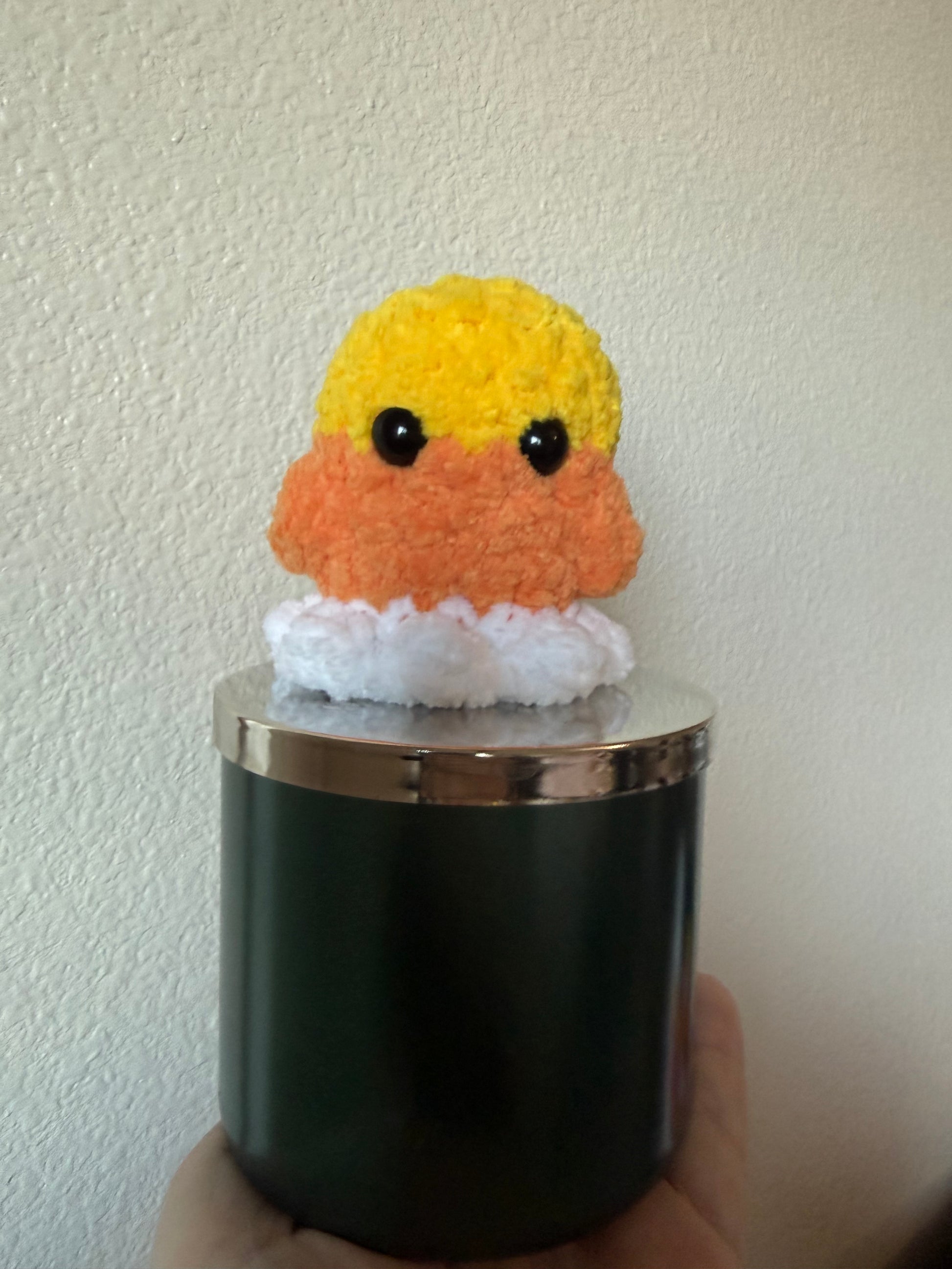 Crochet plushie is made with a soft 100% polyester yarn and polyester fiber filling.